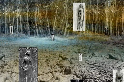 Avec Dérive, Mona Massé propose une réflexion sur la construction identitaire, sur la complexité des images que nous projetons de nous-mêmes et qui nous sont également attribuées. Des images identitaires qui agissent comme un détournement constant de notre être. À l’aide de la technique du frottis, elle reproduit les figures stéréotypées de petits ex-voto provenant de l’île de Tinos en Grèce. Elle les transforme ensuite en une variété d’avatars aux caractéristiques singulières. Ainsi, l’artiste questionne la construction identitaire et les influences sociales qui nous détournent parfois de nous-mêmes. Entre les différentes images qui nous sont attribuées et les nombreux visages que nous affichons, l’individu s’ajuste, se transforme, se cherche et s’impose. Les multiples itinéraires qui nous conduiront à notre identité véritable s’avèrent incertains et fluctuants. Chacun des personnages de cette fresque cherche ainsi, comme l’explique l’artiste : « à prendre racine, dans le vide, à la recherche de l’océan intérieur qui les portera vers leur propre rivage ».