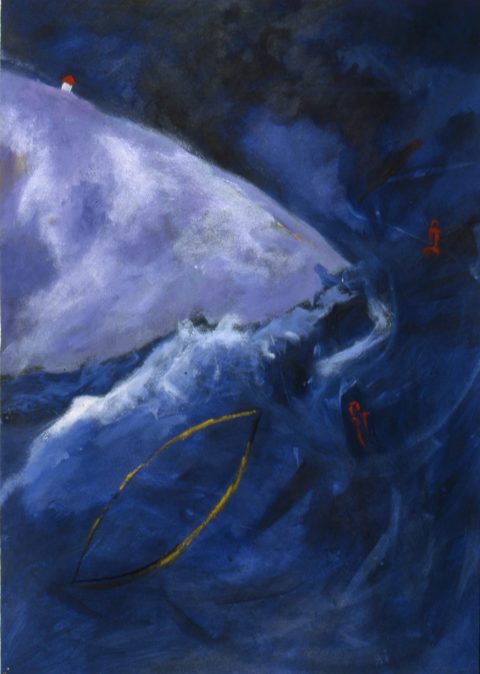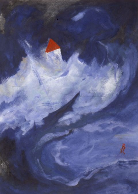 « Sur le pas de la porte. Encore. Et je sens déjà le flot bleu m’emporter. C’est une vision d’ici. Inspirée du rêve. Avec ses couleurs fraîches. Avec ses lumières vives. Et tout à coup. Un point rouge. Tel un regard d’enfant émerveillé. Et je repars avec une impression semblable à celle qu’on a lorsqu’on marche pieds nus dans la rosée, enveloppé par la brise fraîche du matin. »